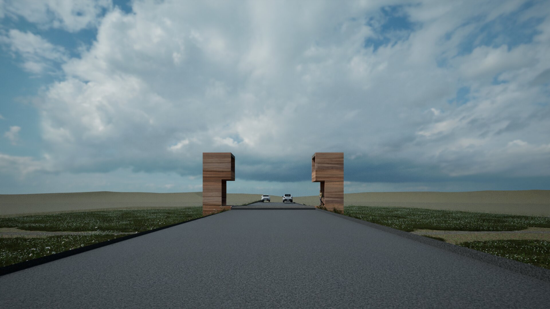 Level 1 offers passengers a panoramic view ofthe landscape and the road, while waiting to the bus. Depending on thegeographic location, the earth will give a unique colour to the construction.