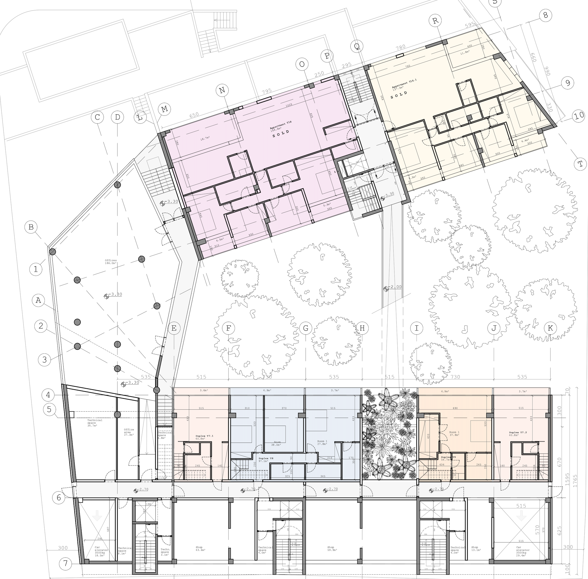 Functions are distributed according to the natural slope of the land, allowing green spaces to be interwoven between buildings and across the site. A north-south pedestrian link connects the entire complex, encouraging residents to move through and engage with the landscaped environment.The development features a wide range of apartment sizes and typologies, designed to meet the needs of a diverse community and to foster a socially integrated neighbourhood.