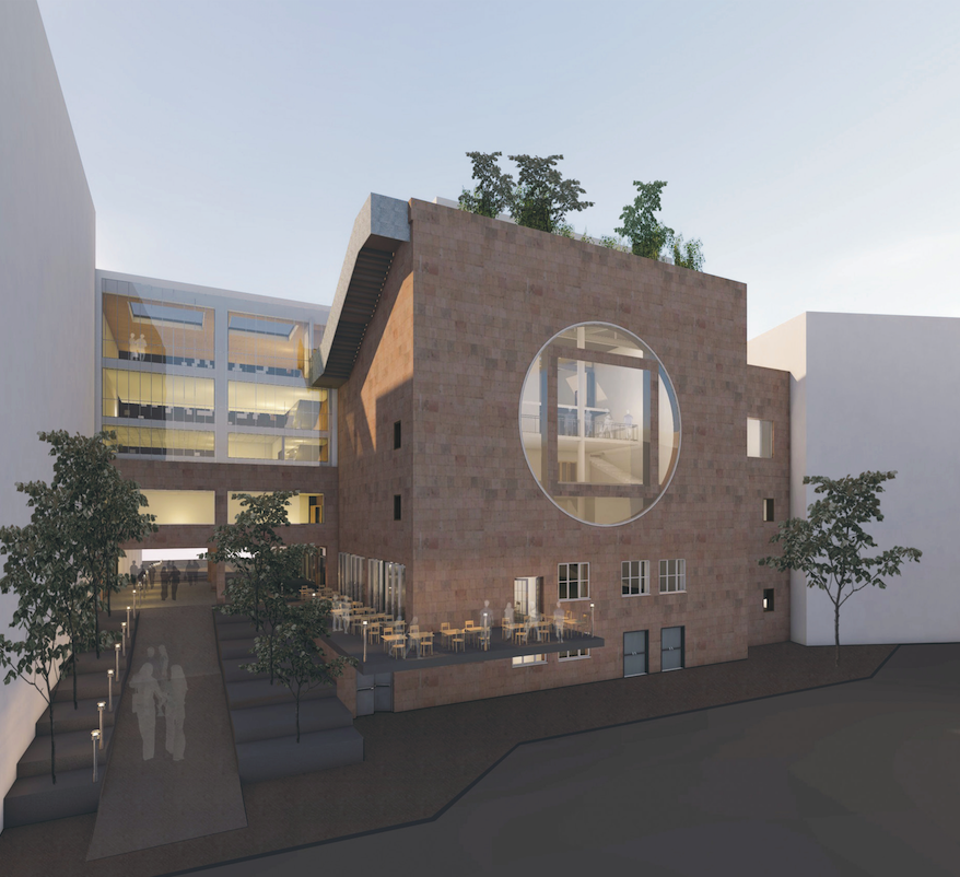 The openness of the building is expressed both physically and visually: the ground floor is permeable to pedestrian flow, and a newly introduced sculpture garden acts as a connective tissue between two areas of the neighbourhood. This garden enables a continuous reading of the building while reinforcing its public character.