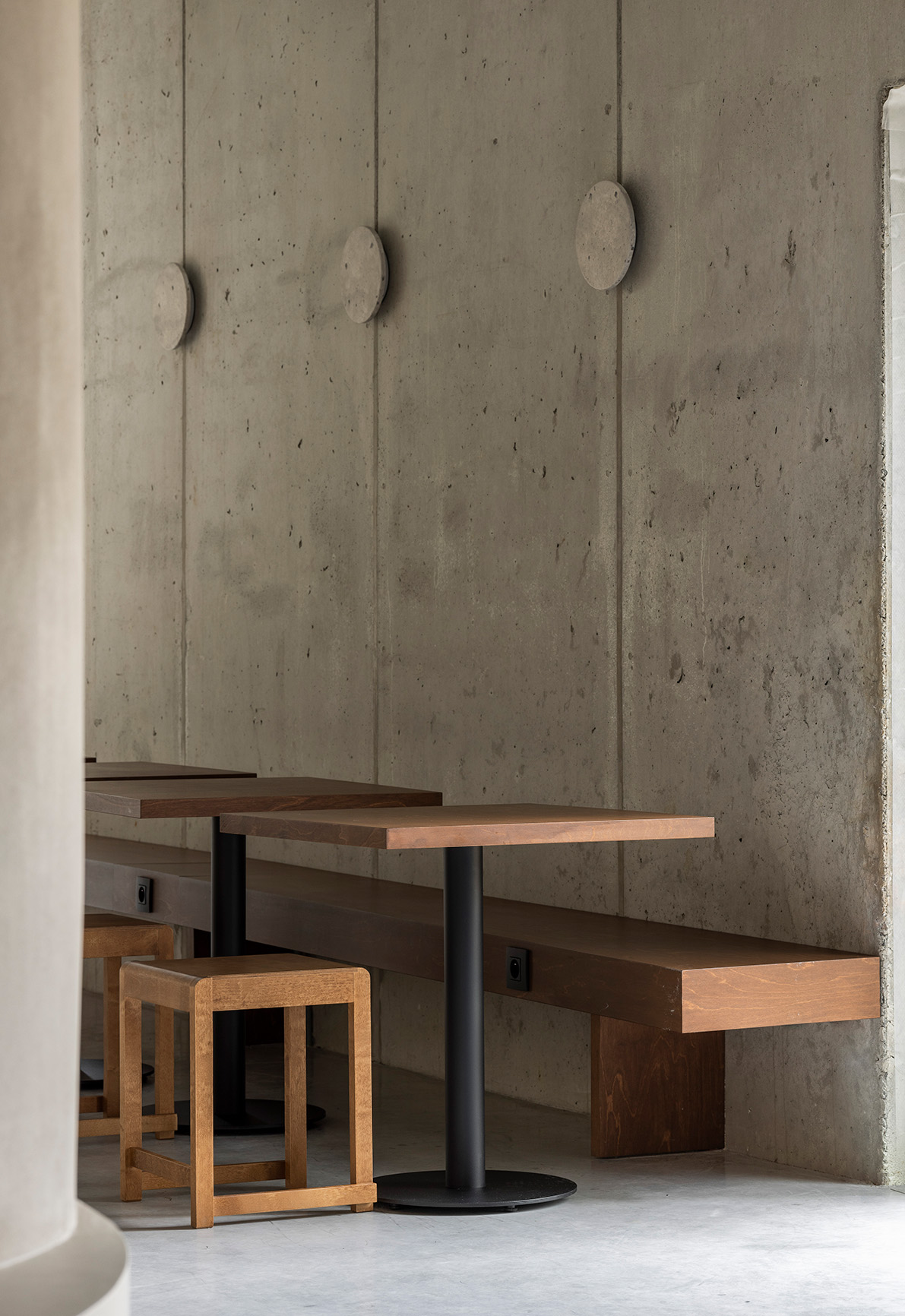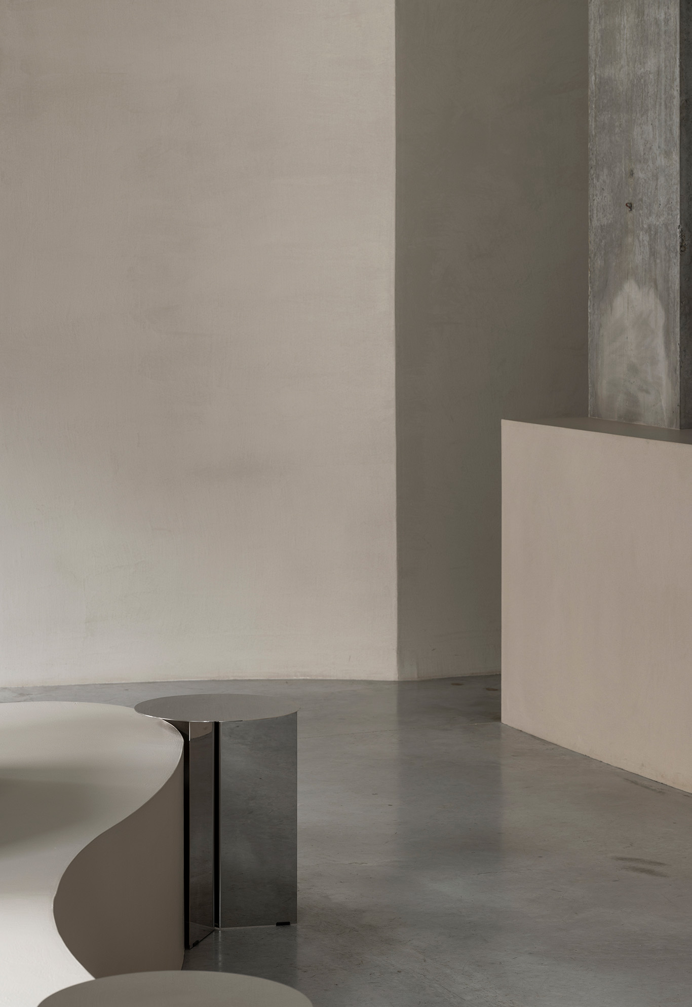 The design reveals the inherent qualities of the existing shell, establishing a subtle dialogue between structure and intervention. The space balances contrasts —organic and linear forms, smooth and rough textures —without relying on decoration or stylistic trends.