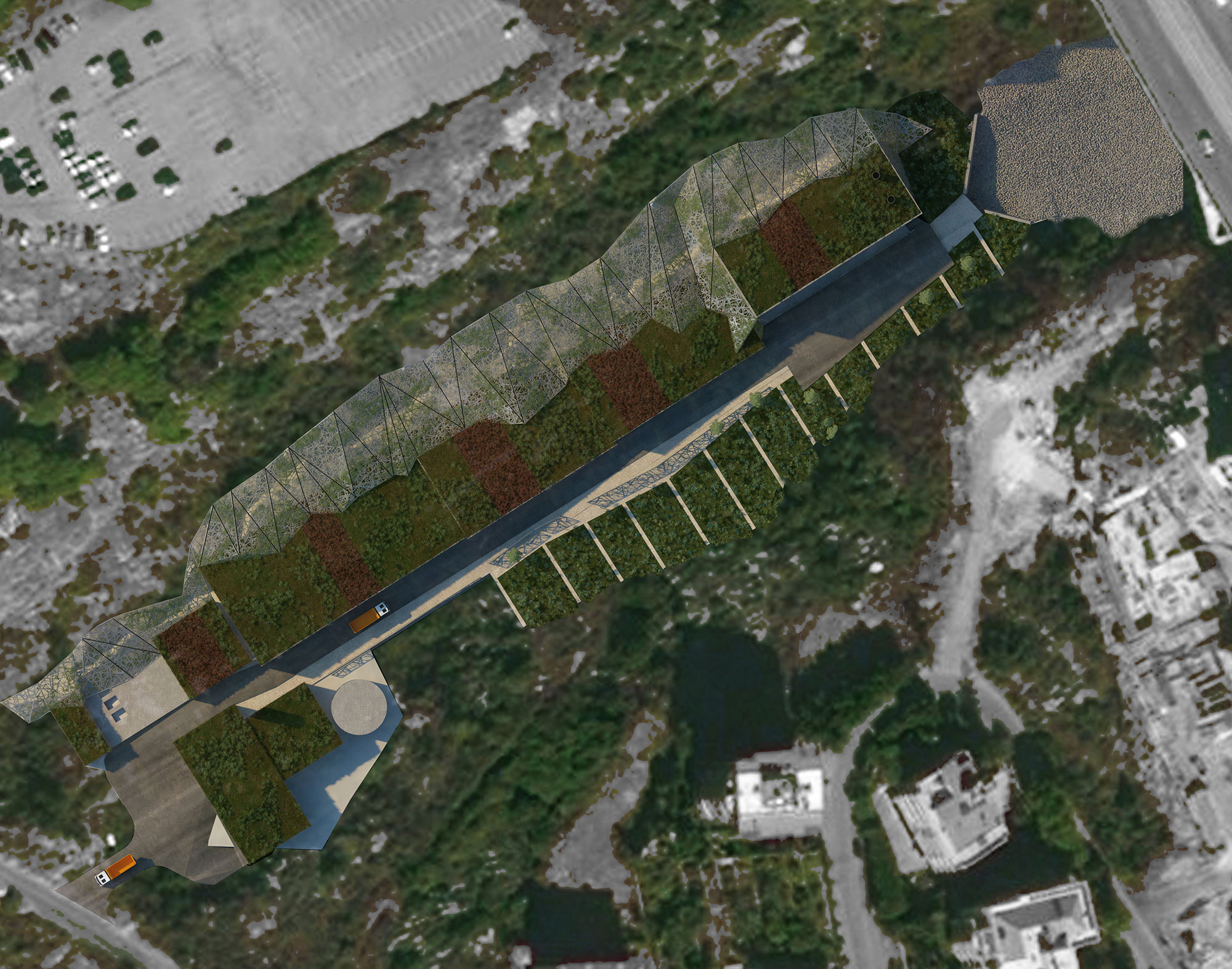 - Reinventing the infrastructure as both, anatural element of the landscape and an integral part of the urban tissue.